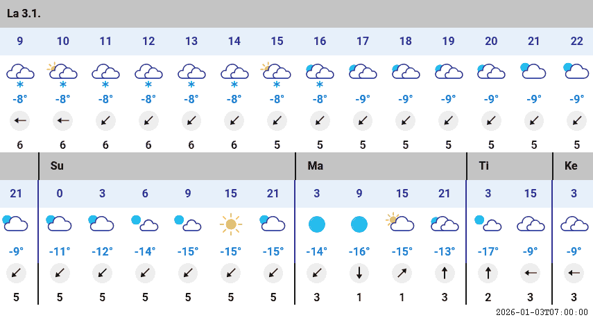 Päivän ylin: -9.5 °C (kello 06:00)